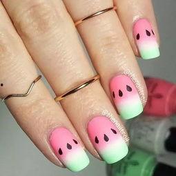 2. 在美甲图案中加入一些与吃瓜相关的元素,如瓜皮、瓜籽等。